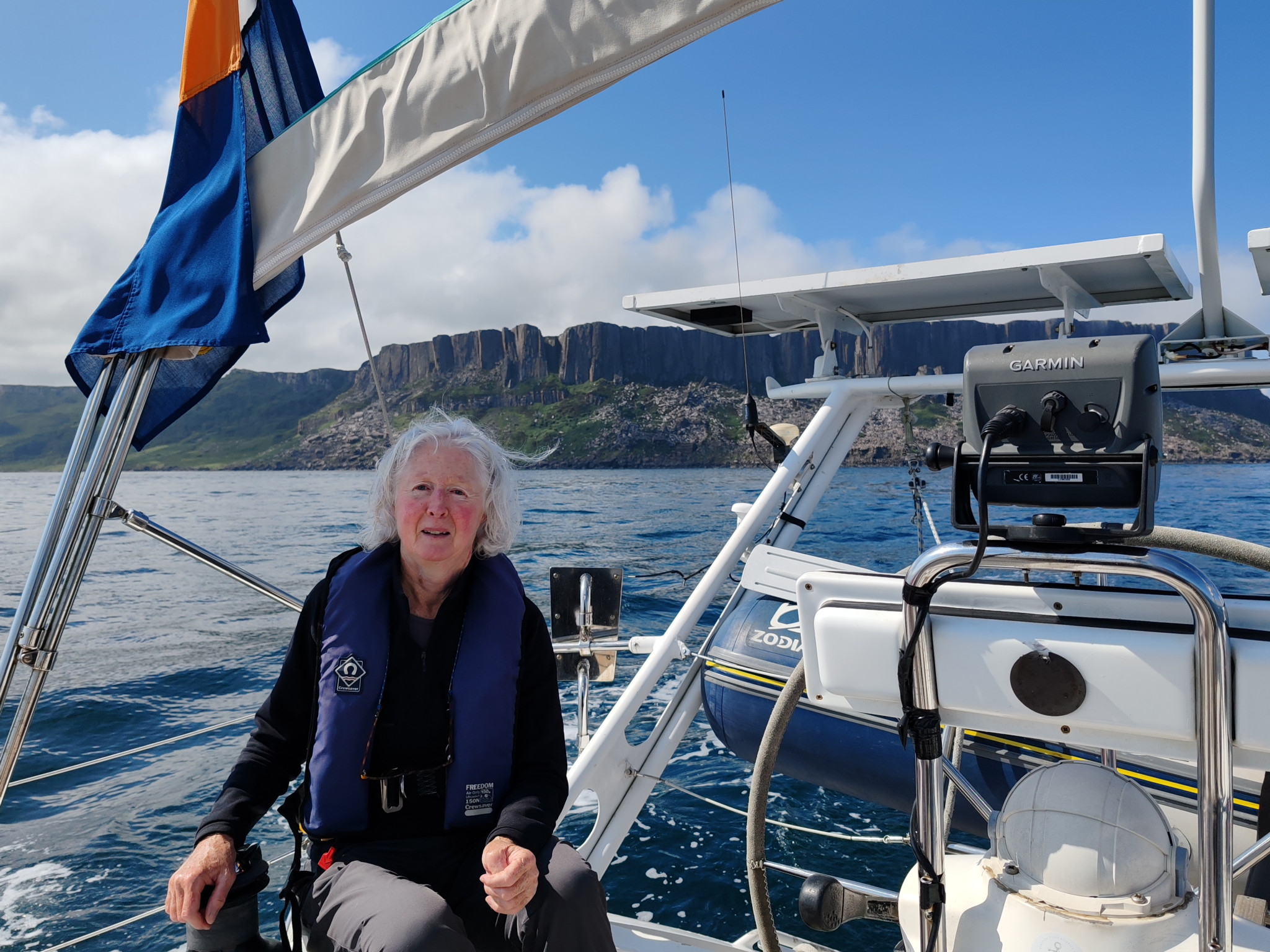 The Firth of Clyde was decided on as I hadn’t cruised there before. Tides were favourable for a mid morning start . We set a course for Campbeltown Scotland 35 nm approx. Light winds and slack tides made for a relaxing sail through Rathlin Sound then passing Fair Head and rounding the Mull of Kintyre to Campbeltown with breath taking scenery all day.